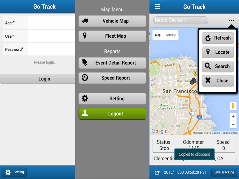 Cuenta con una aplicación web para realizar el rastreo en tiempo real de usuarios, flotillas o bienes. Así como una aplicación para Android o iOS que tiene en su interior un botón de pánico de respuesta inmediata.